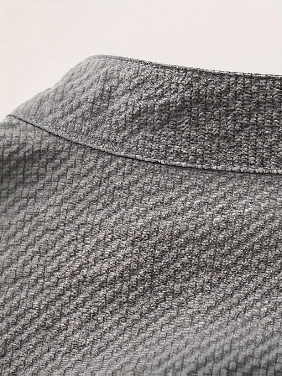 استمتع بأناقة مريحة مع قميص هينلي بأكمام طويلة للرجال، الذي يجمع بين التصميم العصري والراحة القصوى. يتمتع بأكمام مطوية تمنحك إطلالة متميزة، بينما توفر التفاصيل المدروسة مثل زرار أمامي وسجاف قف بجانب الطريق لمسة عصرية وأنيقة.